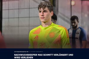 官方:拜仁续约19岁门将马克斯-施密特,并外租德丙乌尔姆1年